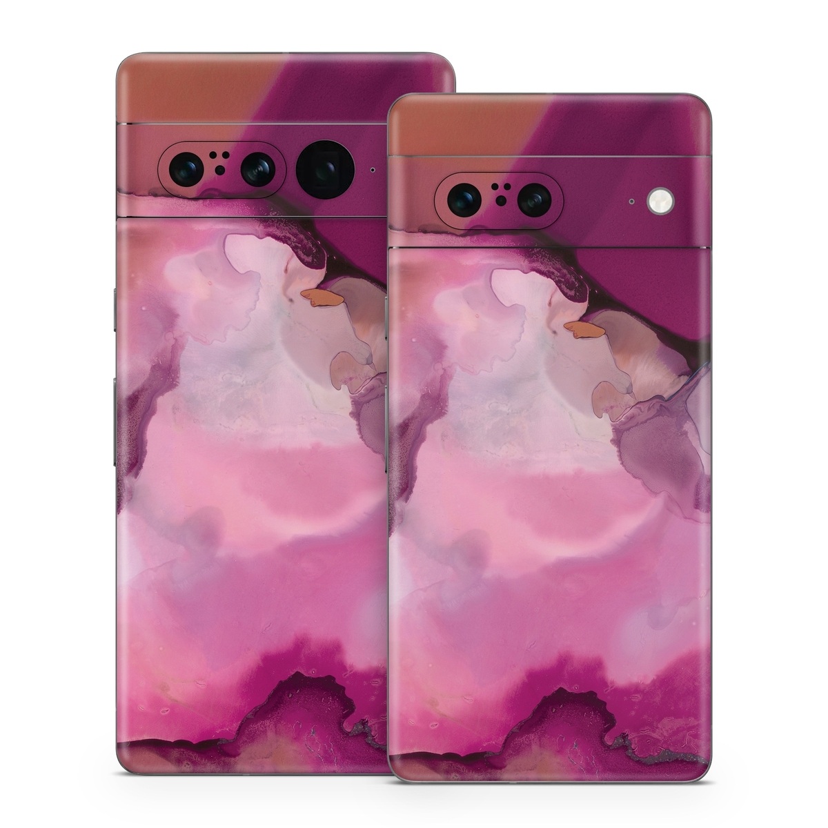 iStyles Google Pixel 7 Series Skin design of Purple, Pink, Watercolor paint, Magenta, Illustration, Art, with white, red, pink, white colors, and tagged with abstract, abstract, magenta, marble, marbled, purple, watercolor.