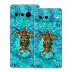 iStyles Google Pixel 7 Series Skin design of Sea turtle, Green sea turtle, Turtle, Hawksbill sea turtle, Tortoise, Reptile, Loggerhead sea turtle, Illustration, Art, Pattern, with blue, black, green, gray, red colors, and tagged with animals.