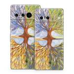 iStyles Google Pixel 7 Series Skin design of Leaf, Tree, Botany, Plant, Symmetry, Art, Pattern, Painting, Plant stem, Plane, with blue, brown, orange, yellow, red, purple colors, and tagged with nature, patterns, leaves, nature, plant, seasons, tree, watercolor.
