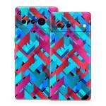 iStyles Google Pixel 7 Series Skin design of Pattern, Turquoise, Line, Teal, Magenta, Design, Textile, Symmetry, Colorfulness, with blue, red, purple, black colors, and tagged with patterns.