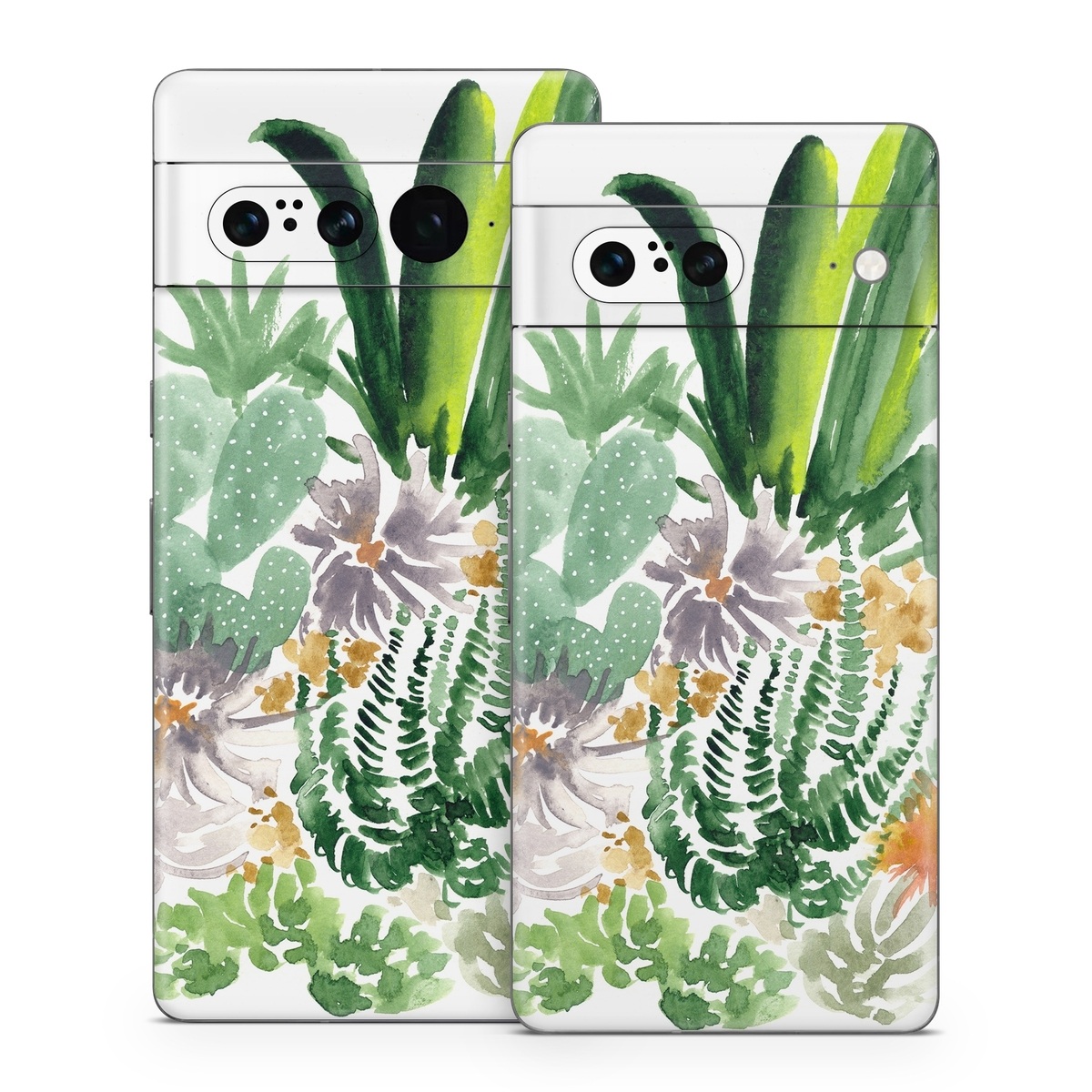 iStyles Google Pixel 7 Series Skin design of Cactus, Plant, Flower, Botany, Leaf, Illustration, Pine, Grass, Succulent plant, Branch, with white, green, red, orange colors, and tagged with flowers, nature, agave, cactus, desert, flowers, succulents.