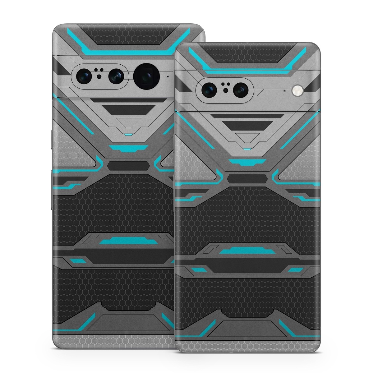 iStyles Google Pixel 7 Series Skin design of Blue, Turquoise, Pattern, Teal, Symmetry, Design, Line, Automotive design, Font, with black, gray, blue colors, and tagged with patterns.
