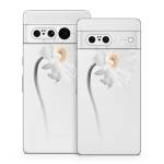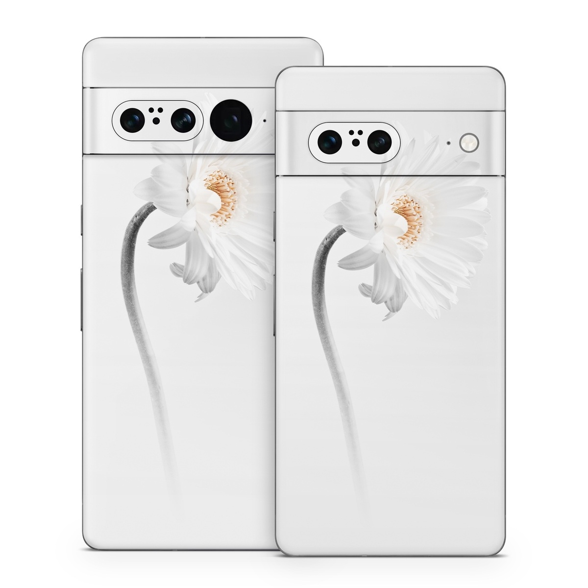 iStyles Google Pixel 7 Series Skin design of White, Hair accessory, Headpiece, Gerbera, Petal, Flower, Plant, Still life photography, Headband, Fashion accessory, with white, gray colors, and tagged with photos, flowers.