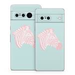 iStyles Google Pixel 7 Series Skin design of Sleeve, Fin, Art, Terrestrial animal, Snout, Painting, Fish, Marine biology, Magenta, Pattern, with pink, white, blue colors, and tagged with patterns, animals, pink, stripes, zebra.