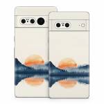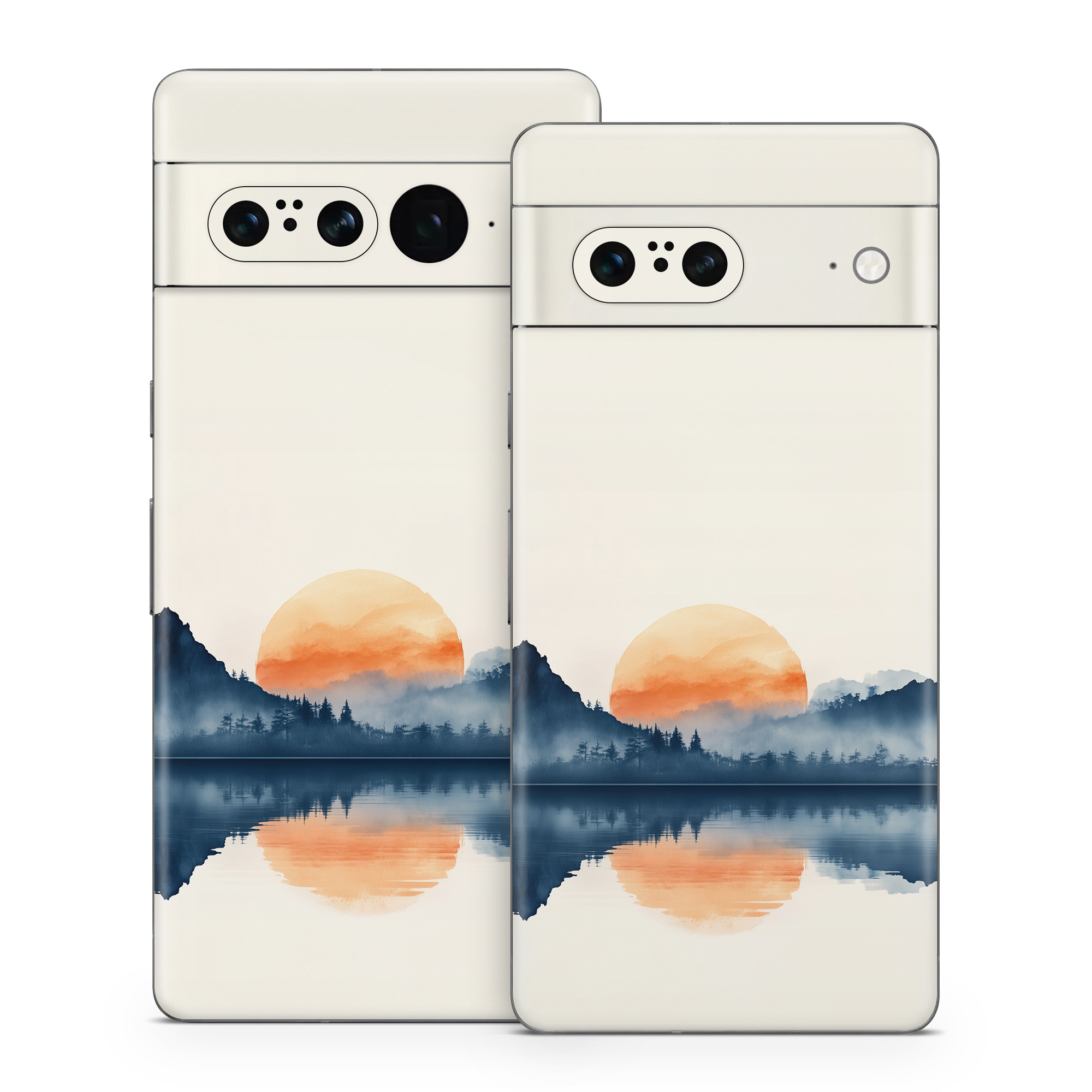 iStyles Google Pixel 7 Series Skin design of Water, Water resources, Sky, Mountain, Natural landscape, Lake, Atmospheric phenomenon, Landscape, Horizon, Afterglow, with black, blue, white, gray, yellow, orange, red colors, and tagged with nature, fineart, mountains, sunset, trees, landscape.