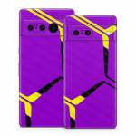 iStyles Google Pixel 7 Series Skin design of Colorfulness, Purple, Violet, Line, Magenta, Parallel, Symmetry, Pattern, Electric blue, Font, with purple, yellow, black colors, and tagged with patterns, hexagon, pattern, lines.