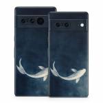 iStyles Google Pixel 7 Series Skin design of Water, Liquid, Art, Wing, Beak, Feather, Seabird, Electric blue, Fish, Tail, with black, blue, white, gray colors, and tagged with animals, fineart, koi, fish, pond, good, luck.