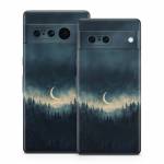 iStyles Google Pixel 7 Series Skin design of Cloud, Sky, Atmosphere, Moon, Ecoregion, Crescent, Natural landscape, Tree, Plant, Dusk, with black, blue, white, gray colors, and tagged with nature, fineart, space, forest, night, clouds.