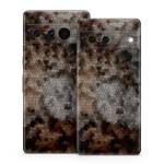 iStyles Google Pixel 7 Series Skin design of Brown, Design, Soil, Pattern, Rock, Rust, Granite, Metal, with black, white, gray, brown colors, and tagged with patterns.