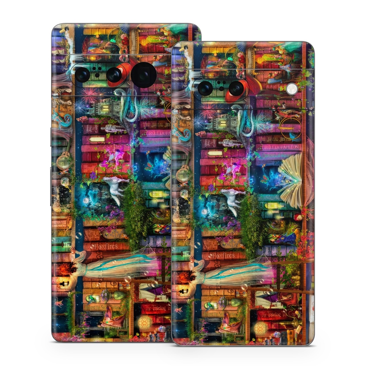 iStyles Google Pixel 7 Series Skin design of Painting, Art, Theatrical scenery, with black, red, gray, green, blue colors, and tagged with patterns, animals, people, objects, nature, fantasy, space.