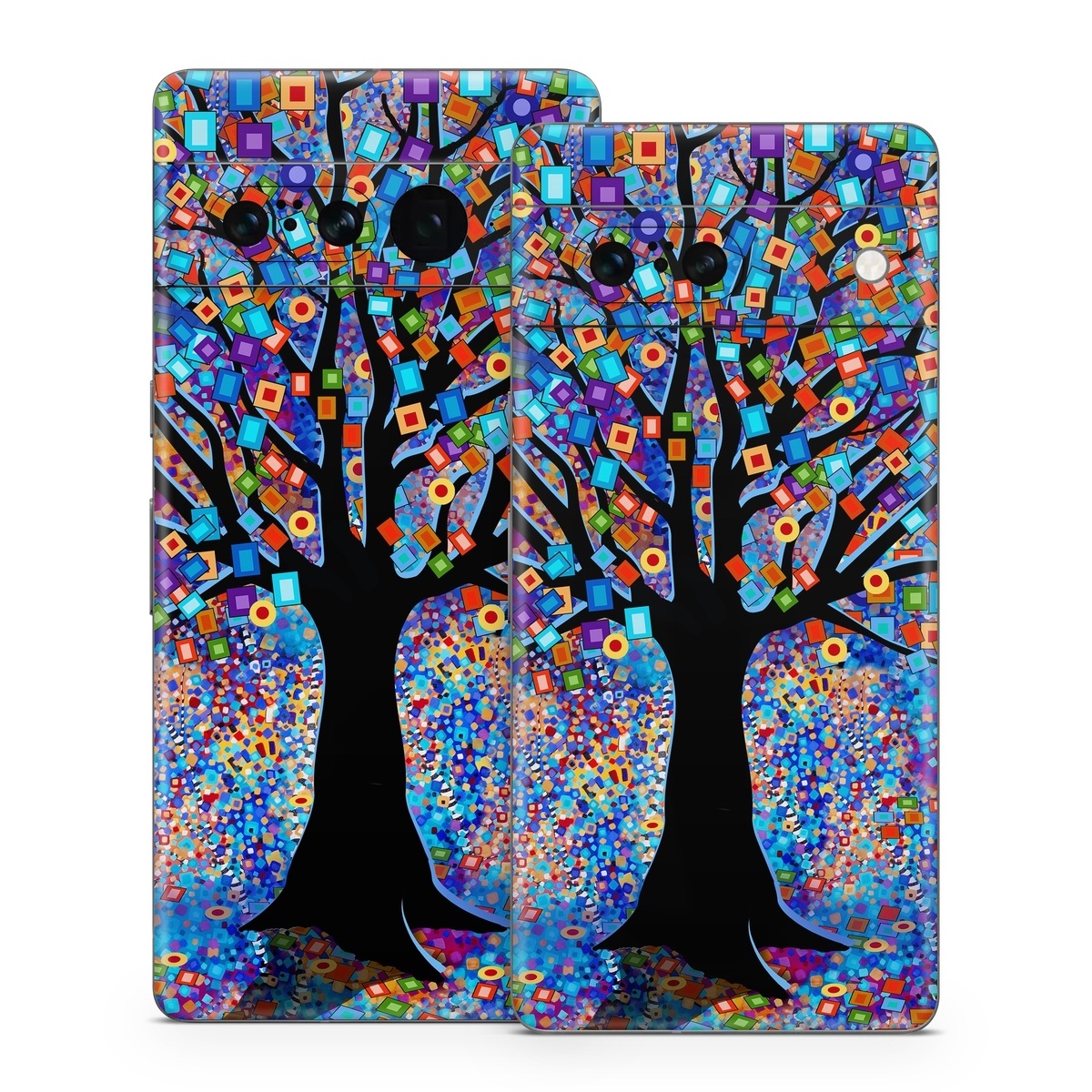 iStyles Google Pixel 7 Series Skin design of Psychedelic art, Modern art, Art, with black, blue, red, orange, yellow, green, purple colors, and tagged with nature, patterns.