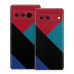 iStyles Google Pixel 7 Series Skin design of Blue, Green, Turquoise, Azure, Teal, Electric blue, Line, Pattern, Design, Graphic design, with black, blue, red colors, and tagged with patterns, block, blocking, color, colorblock, geometric, shape, simple.