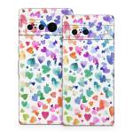 iStyles Google Pixel 7 Series Skin design of Colorfulness, Art, Line, Creative arts, Pattern, Circle, Font, Visual arts, Magenta, Painting, with white, blue, green, red, pink, orange, yellow, purple colors, and tagged with patterns, hearts, heart, hearts, love, pattern, pride, rainbow, shapes, valentine, valentinesday.