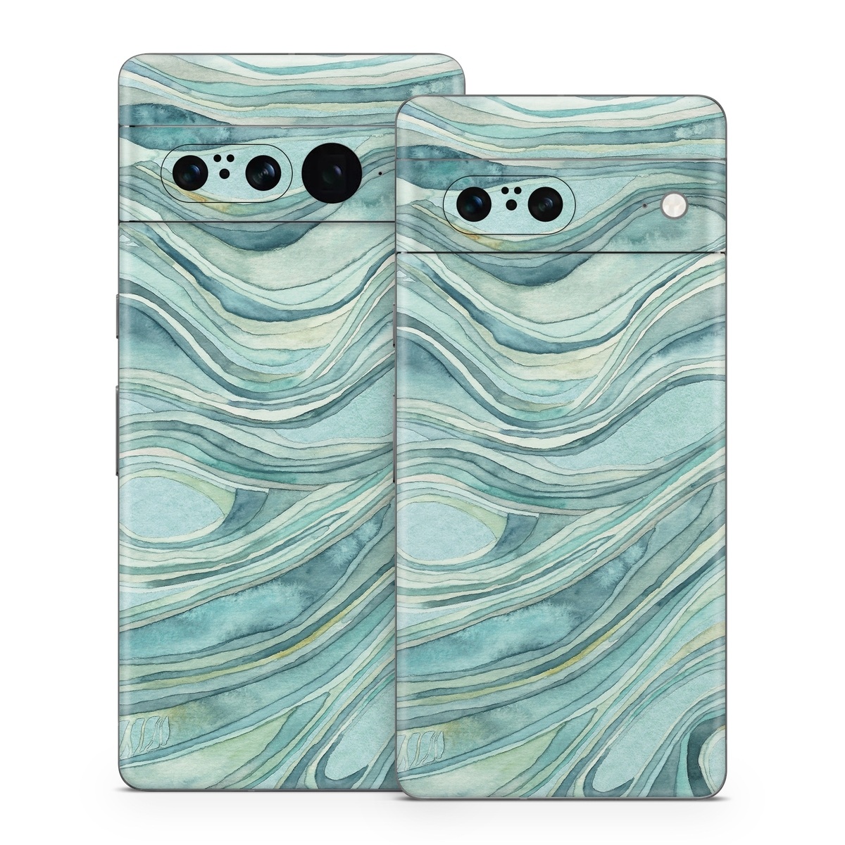iStyles Google Pixel 7 Series Skin design of Aqua, Blue, Pattern, Turquoise, Teal, Water, Design, Line, Wave, Textile, with gray, blue colors, and tagged with patterns.