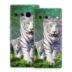 iStyles Google Pixel 7 Series Skin design of Plant, Eye, Plant community, Vertebrate, Felidae, Leaf, Botany, Carnivore, Organism, Terrestrial plant, with white, black, blue, green, pink, yellow colors, and tagged with animals, nature, animal, animals, cub, cubs, green, jungle, outdoor, tiger, tigers, white.
