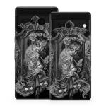 iStyles Google Pixel 7 Series Skin design of Style, Art, Monochrome, Black-and-white, Monochrome Photography, Visual Arts, Illustration, Painting, Drawing, with black, white, gray colors, and tagged with skulls, people, animals, flowers, objects, bride, girl, goth, gothic, lady, skull, sugarskull, tattoo, tattoos, woman.