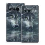 iStyles Google Pixel 7 Series Skin design of Wolf, Canidae, Wildlife, Red wolf, Canis, canis lupus tundrarum, Snout, Saarloos wolfdog, Wolfdog, Carnivore, with black, gray, blue colors, and tagged with animals.