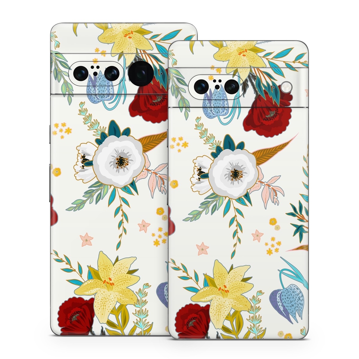 iStyles Google Pixel 7 Series Skin design of Floral design, Pattern, Wrapping paper, Botany, Design, Flower, Wallpaper, Plant, Clip art, Pedicel, with white, blue, red, yellow, pink, orange colors, and tagged with patterns, flowers, nature, filigree, floral, flower, flowers, leaves, pattern.