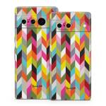 iStyles Google Pixel 7 Series Skin design of Pattern, Orange, Line, Design, Graphic design, Tints and shades, Triangle, with red, green, gray, black, blue, purple colors, and tagged with patterns.