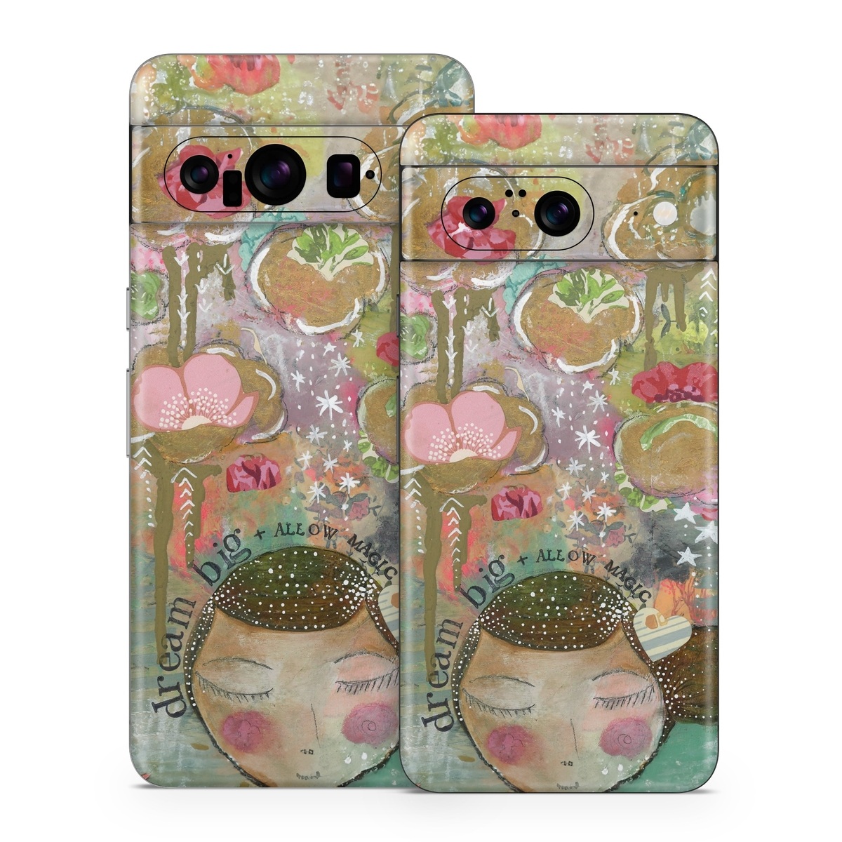 iStyles Google Pixel 8 Series Skin design of Painting, Pink, Illustration, Art, Child art, Watercolor paint, Drawing, Visual arts, Still life, with brown, pink, red, green, white, black, orange, gray colors, and tagged with flowers, signs, people, dream, flowers, magic, nature, painting.