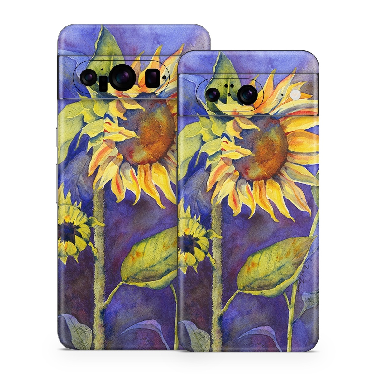 iStyles Google Pixel 8 Series Skin design of Flower, Sunflower, Painting, sunflower, Watercolor paint, Plant, Flowering plant, Yellow, Acrylic paint, Still life, with green, black, blue, gray, red, orange colors, and tagged with flowers, fineart.
