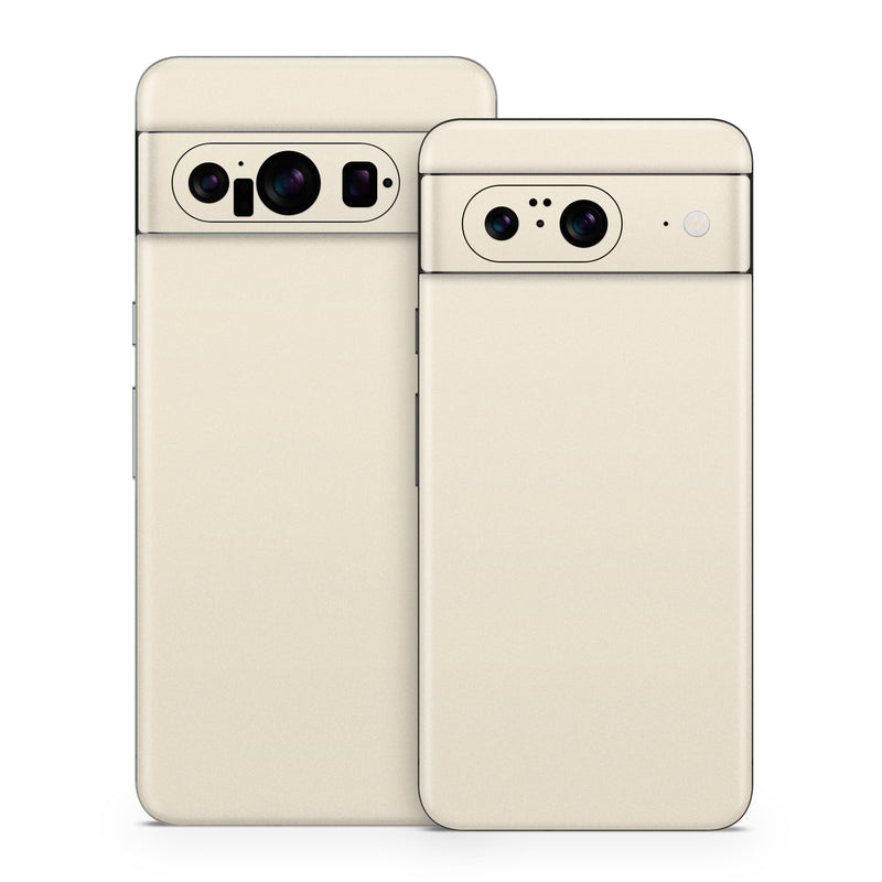 iStyles Google Pixel 8 Series Skin design of Brown, Beige, Pattern, Font, Peach, Event, Rectangle, Circle, Brand, with yellow colors, and tagged with solidcolors, cream, milk, yellow, single, color.