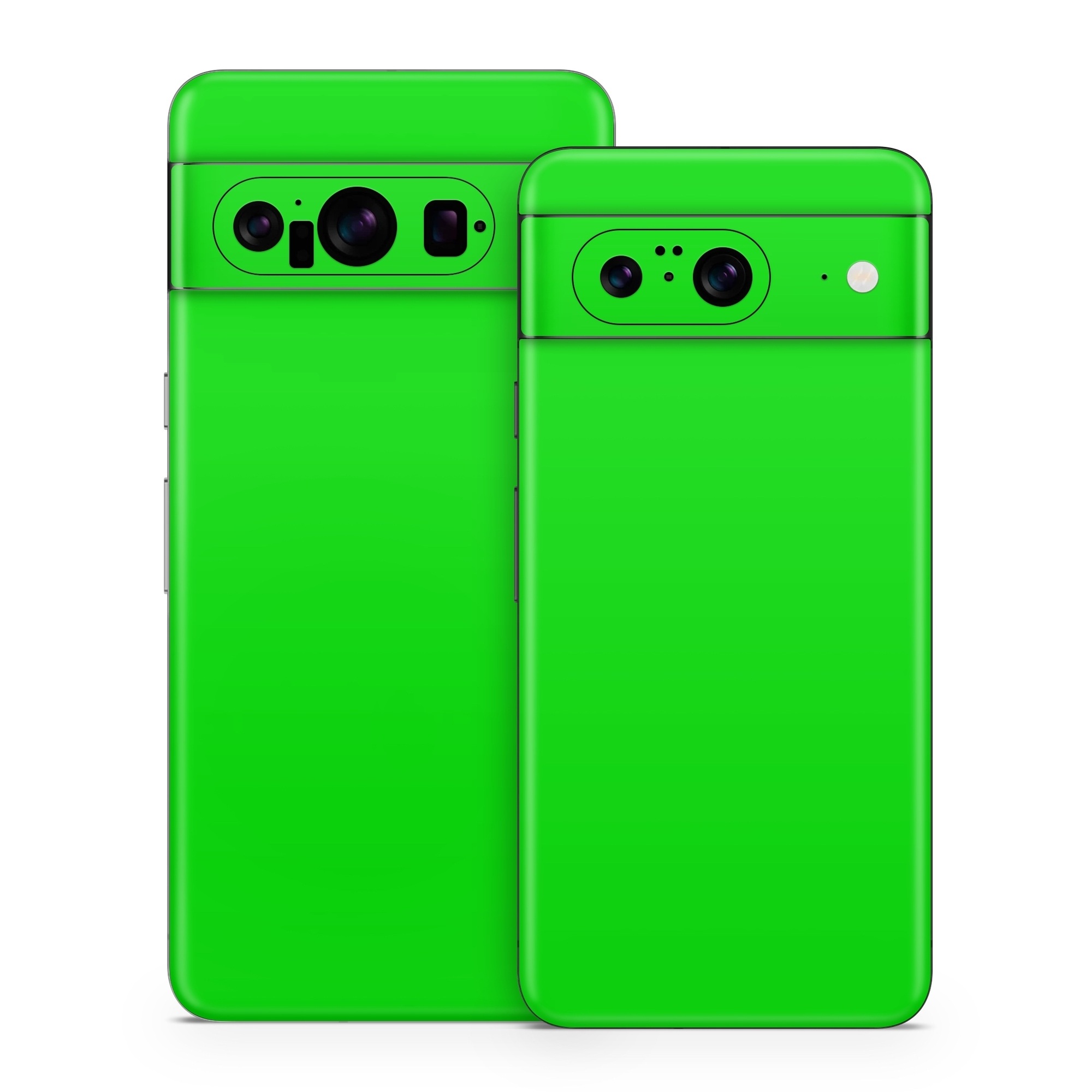 iStyles Google Pixel 8 Series Skin design of Green, Rectangle, Baize, Table, Font, Electric blue, Pattern, Symmetry, Magenta, Circle, with green colors, and tagged with solidcolors, green, slime, ghostbusters.