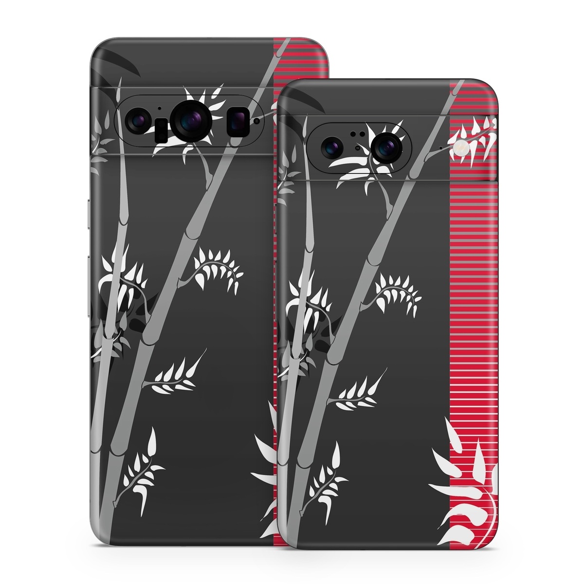 iStyles Google Pixel 8 Series Skin design of Tree, Branch, Plant, Graphic design, Bamboo, Illustration, Plant stem, Black-and-white, with black, red, gray, white colors, and tagged with nature.