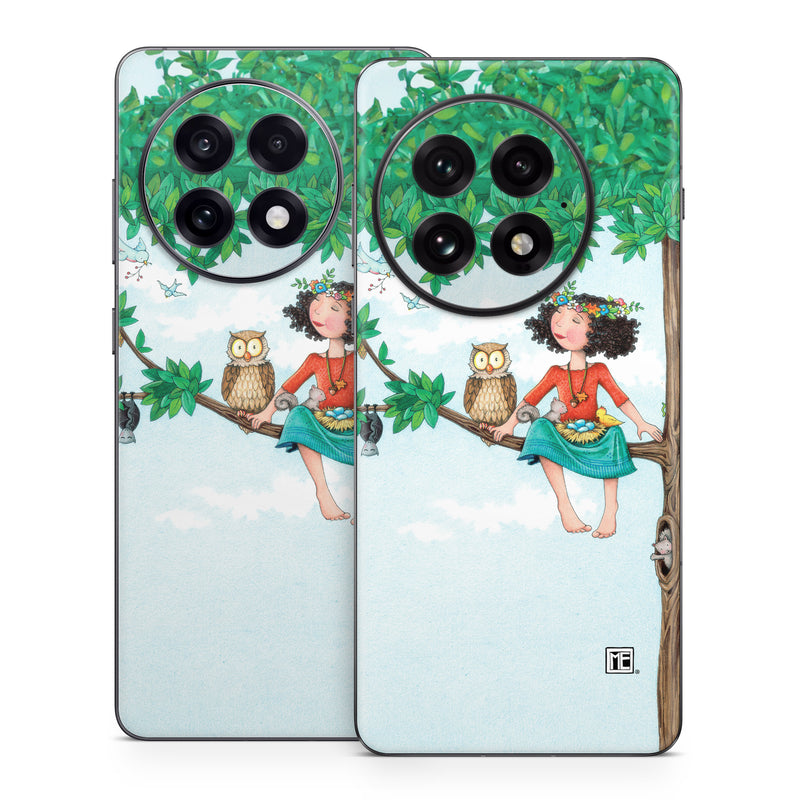 iStyles OnePlus 13 Series Skin design of Cartoon, Illustration, Branch, Bird, Owl, Tree, Art, Plant, Clip art, Fictional character, with blue, gray, red, black, white, green colors, and tagged with people, animals, nature.