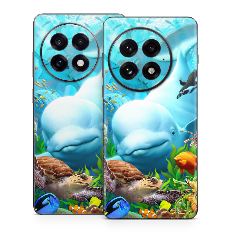 iStyles OnePlus 13 Series Skin design of Green, Blue, Azure, Natural environment, Underwater, Organism, Mammal, Art, Marine biology, Aqua, with blue, green, red, white, brown, yellow, orange, blue colors, and tagged with animals, nature, dolphin, fish, ocean, sea, sealife, shark, underwater, water, whale.
