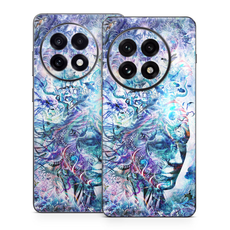 iStyles OnePlus 13 Series Skin design of Psychedelic art, Water, Fractal art, Art, Pattern, Graphic design, Design, Illustration, Electric blue, Visual arts, with blue, purple, green, red, gray, white colors, and tagged with animals, nature, flowers.