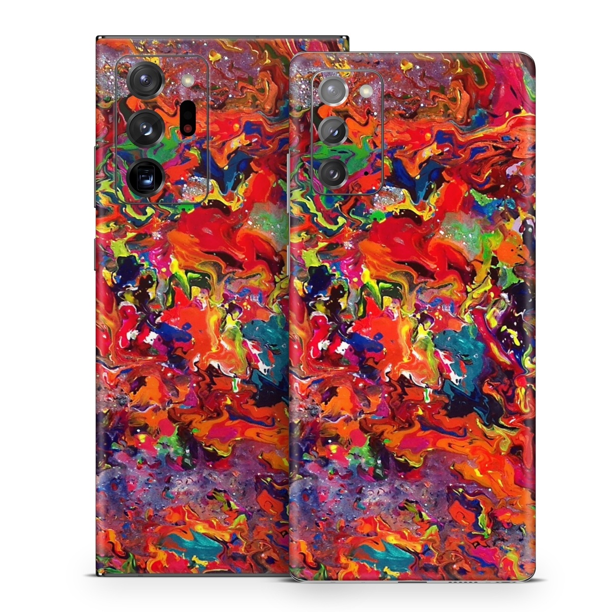 iStyles Samsung Galaxy Note 20 Series Skin design of Colorfulness, Modern art, Acrylic paint, Painting, Visual arts, Art, Psychedelic art, Textile, Pattern, Paint, with red, yellow, green, orange, yellow colors, and tagged with patterns.