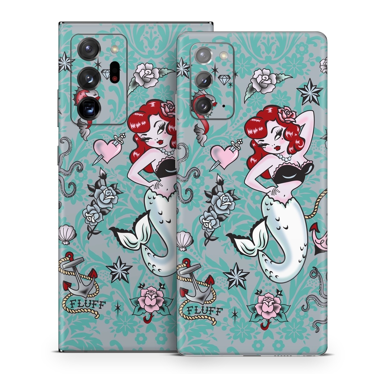 iStyles Samsung Galaxy Note 20 Series Skin design of Mermaid, Illustration, Fictional character, Organism, Art, Pattern, Style, with gray, blue, black, red, white, pink colors, and tagged with patterns, objects, hearts, people, animals.