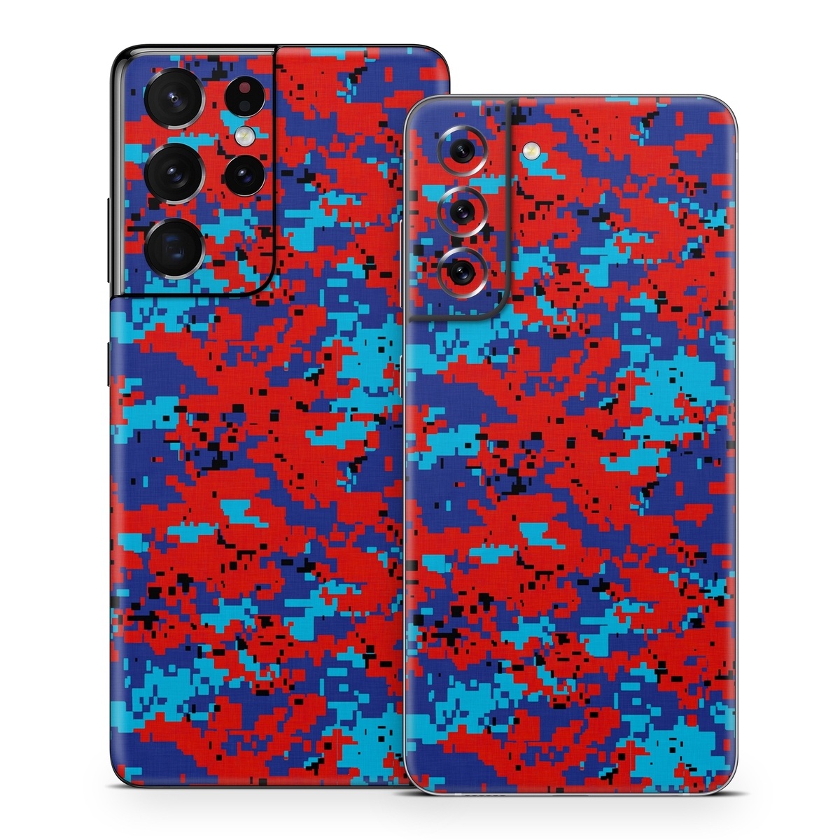 iStyles Samsung Galaxy S21 Series Skin design of Blue, Red, Pattern, Textile, Electric blue, with blue, red colors, and tagged with military, patterns, lookslike, camo, digitalcamo.