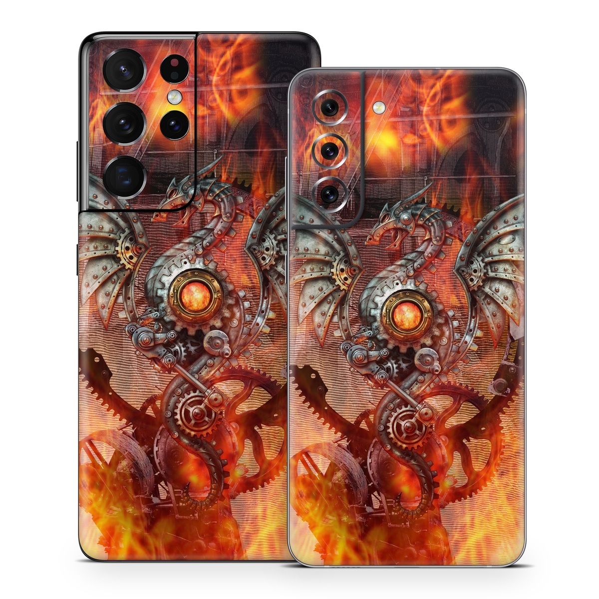 iStyles Samsung Galaxy S21 Series Skin design of Dragon, Demon, Cg artwork, Illustration, Fictional character, Fractal art, Flame, Art, Mythology, Supernatural creature, with red, black, orange, pink, green colors, and tagged with animals, objects.
