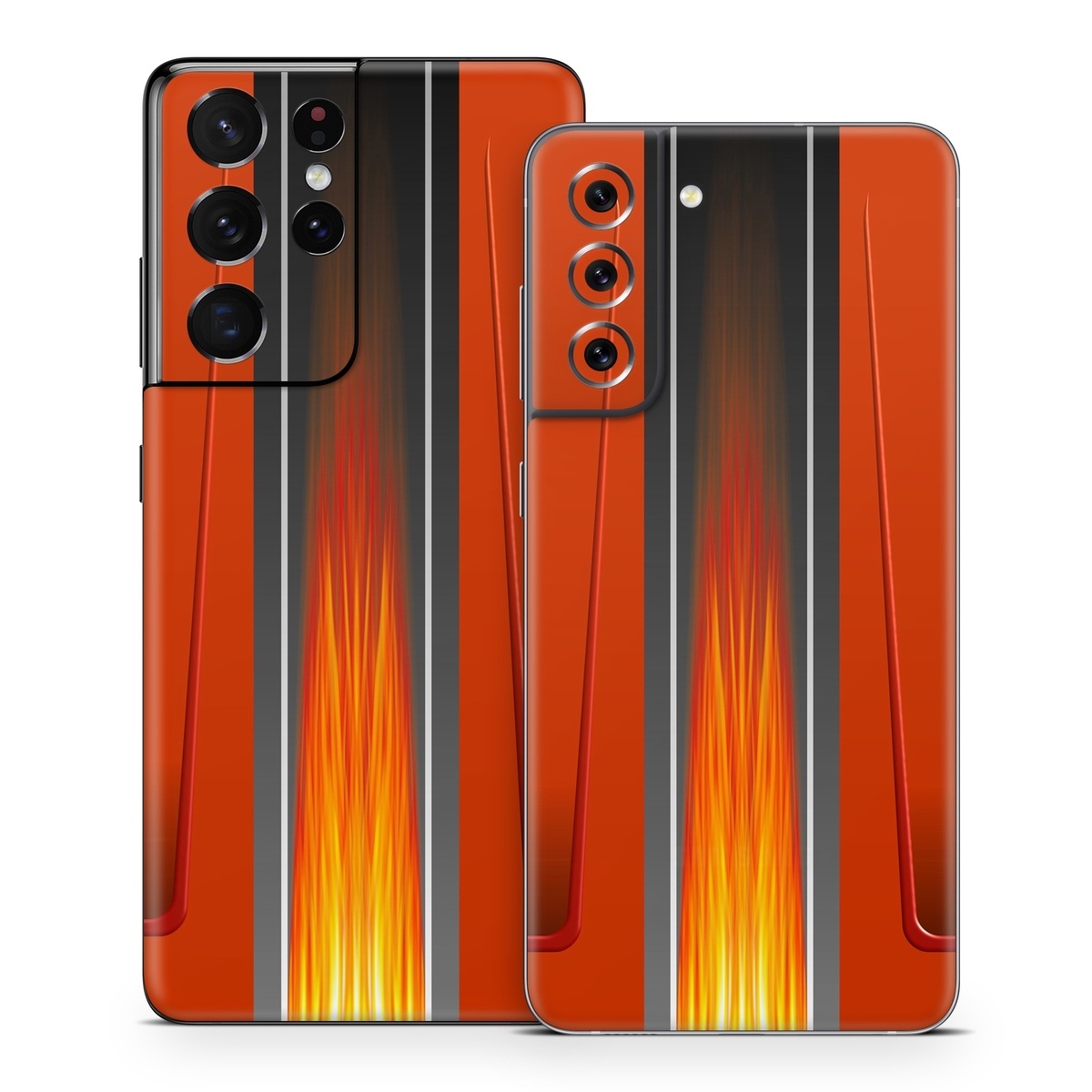 iStyles Samsung Galaxy S21 Series Skin design of Orange, Red, Line, Material property, Rectangle, Automotive lighting, with red, black, orange, gray colors, and tagged with flames.