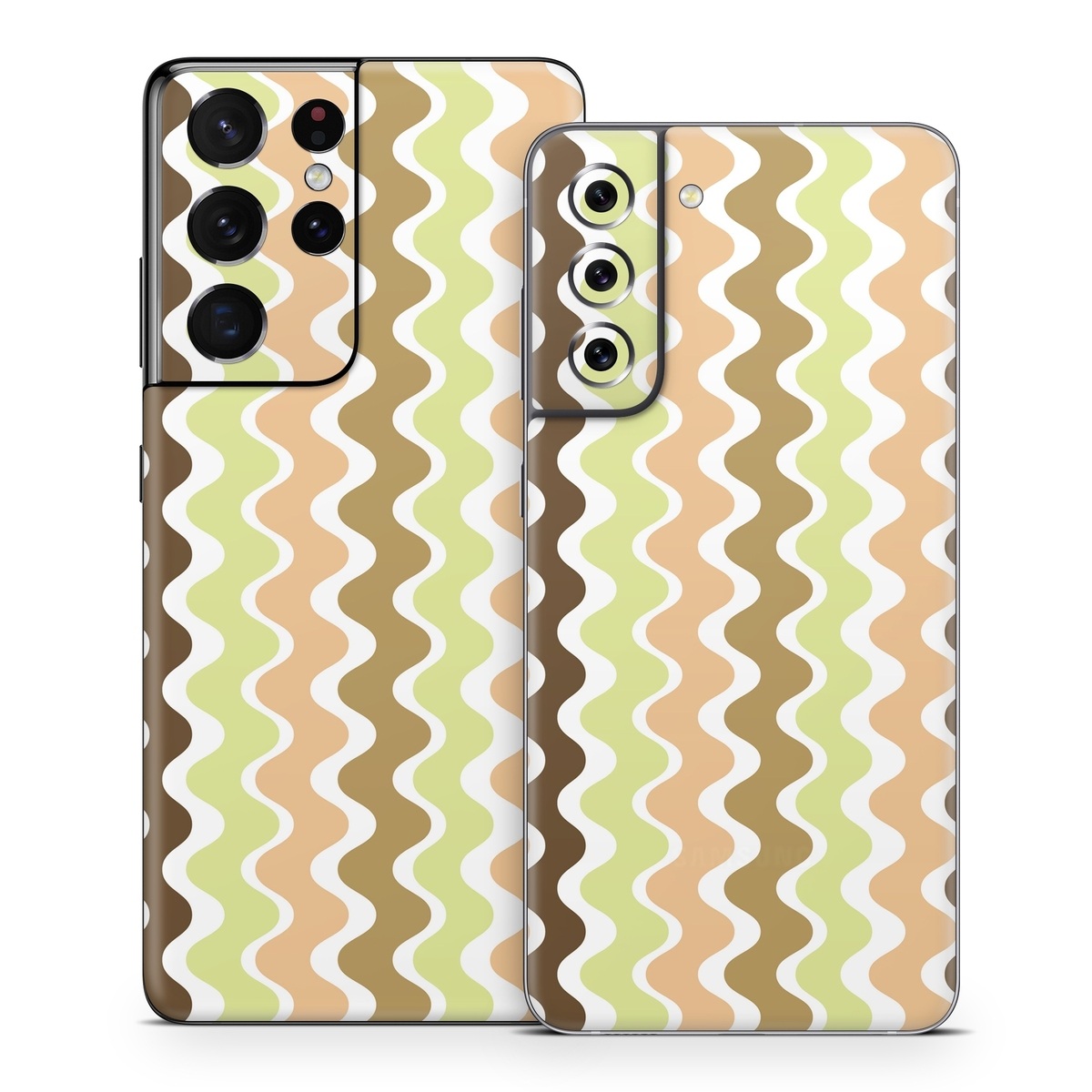 iStyles Samsung Galaxy S21 Series Skin design of Textile, Rectangle, Font, Pink, Aqua, Symmetry, Material property, Circle, Art, Pattern, with white, brown, green, orange colors, and tagged with patterns, waves.