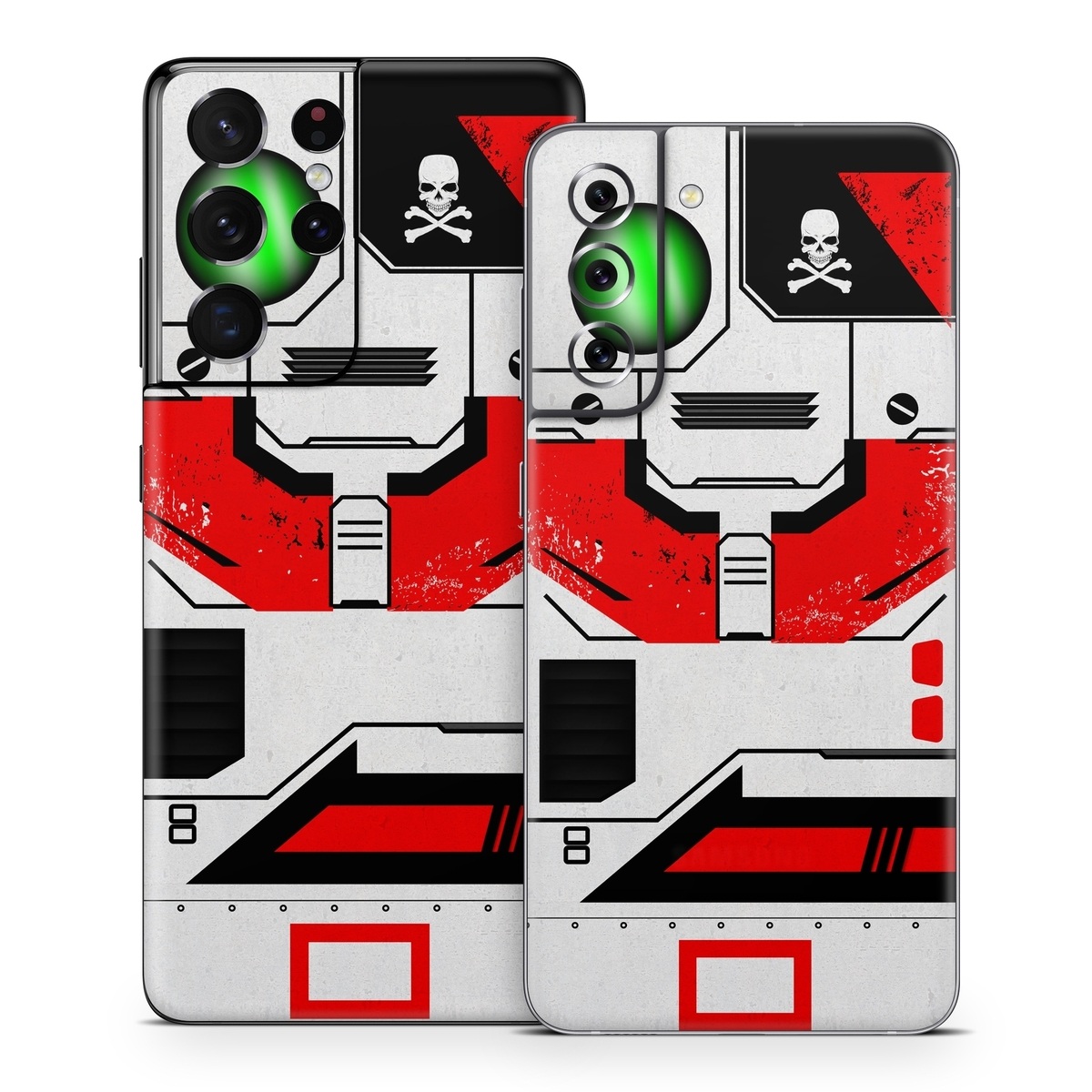 iStyles Samsung Galaxy S21 Series Skin design of Floppy disk, Technology, Electric red, Fictional character, with white, red, black, gray colors, and tagged with lookslike, space, fantasy, military, 791A71FE-632A-4DBE-AA0C-BEF5E188394F.