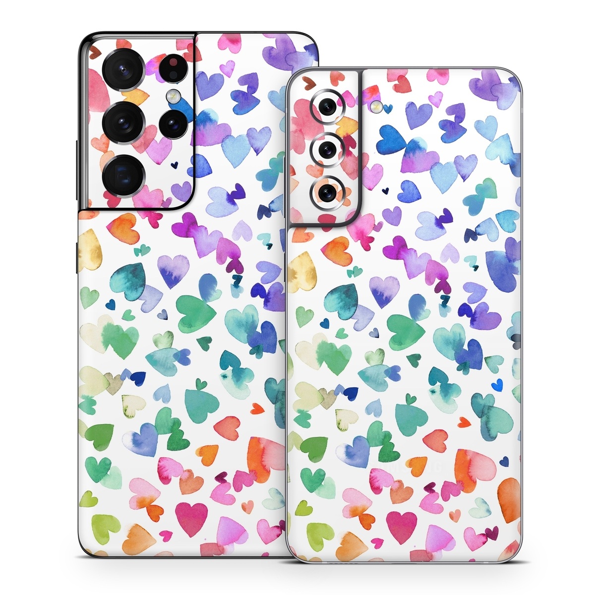iStyles Samsung Galaxy S21 Series Skin design of Colorfulness, Art, Line, Creative arts, Pattern, Circle, Font, Visual arts, Magenta, Painting, with white, blue, green, red, pink, orange, yellow, purple colors, and tagged with patterns, hearts, heart, hearts, love, pattern, pride, rainbow, shapes, valentine, valentinesday.