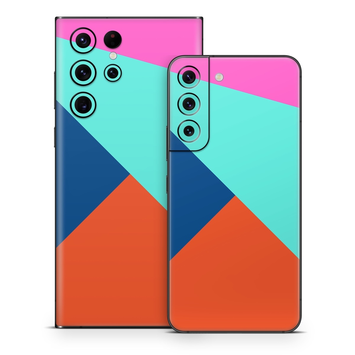 iStyles Samsung Galaxy S22 Series Skin design of Blue, Colorfulness, Turquoise, Line, Azure, Triangle, Pattern, Graphic design, Magenta, with blue, pink, orange, red colors, and tagged with patterns, block, blocking, color, colorblock, geometric, shape, simple.
