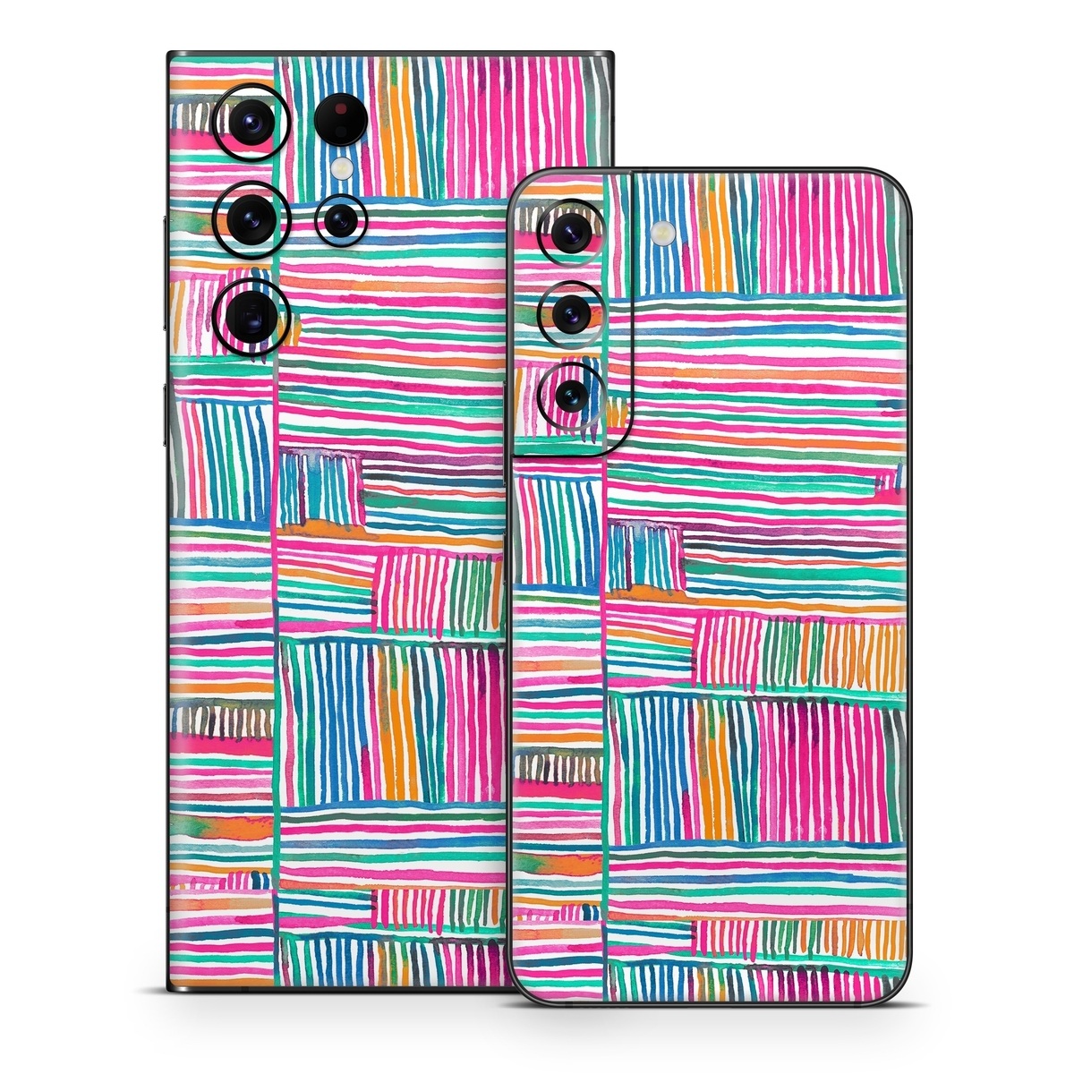 iStyles Samsung Galaxy S22 Series Skin design of Colorfulness, Product, Rectangle, Azure, Textile, Art, Aqua, Material property, Magenta, Tints and shades, with white, pink, orange, green, blue, yellow colors, and tagged with patterns, stripes, pattern.