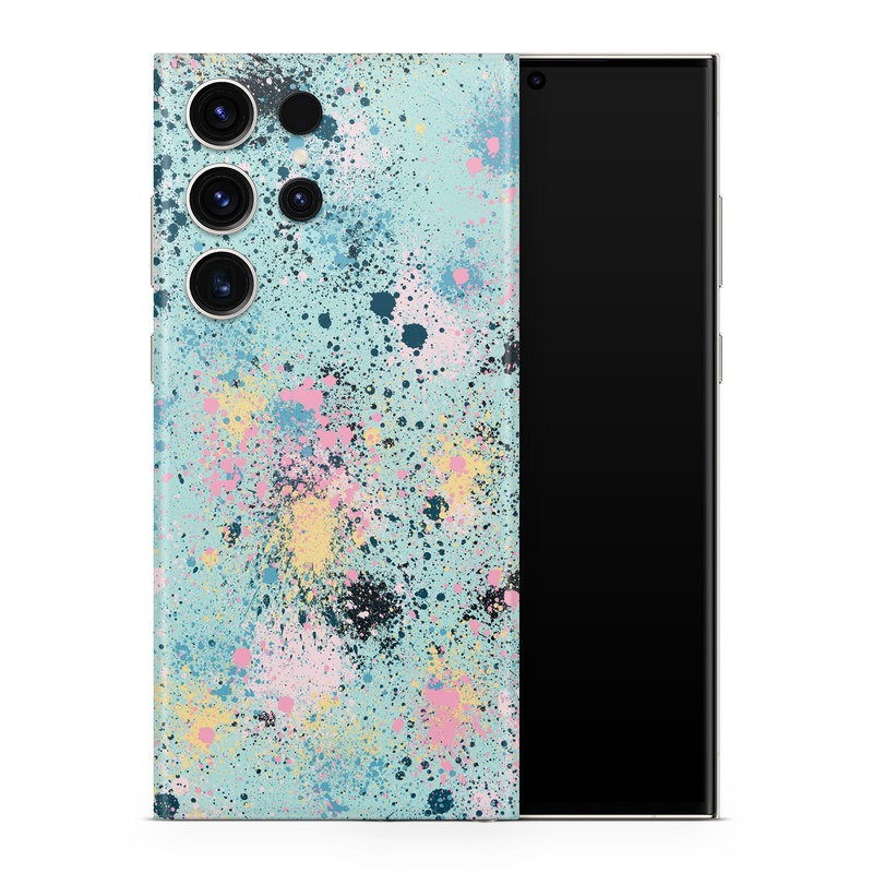 iStyles Samsung Galaxy S23 Series Skin design of Colorfulness, Art, Paint, Aqua, Art paint, Pattern, Tints and shades, Magenta, Electric blue, Creative arts, with blue, black, pink, yellow colors, and tagged with patterns, abstract, blue, collage, ink, paint, pink, splatter, yellow.
