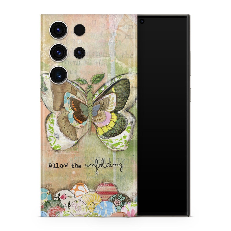 iStyles Samsung Galaxy S23 Series Skin design of Butterfly, Art, Fictional character, Pollinator, Moths and butterflies, Watercolor paint, Illustration, with green, brown, yellow, blue, pink, red colors, and tagged with signs, flowers, animals.