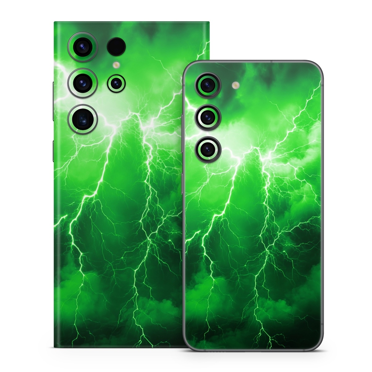 iStyles Samsung Galaxy S23 Series Skin design of Water, Atmosphere, Thunder, Light, Green, Sky, Natural environment, Natural landscape, Electricity, Organism, with black, green colors, and tagged with patterns, nature, lightning, sky, thunderstorm, storm, electricity.