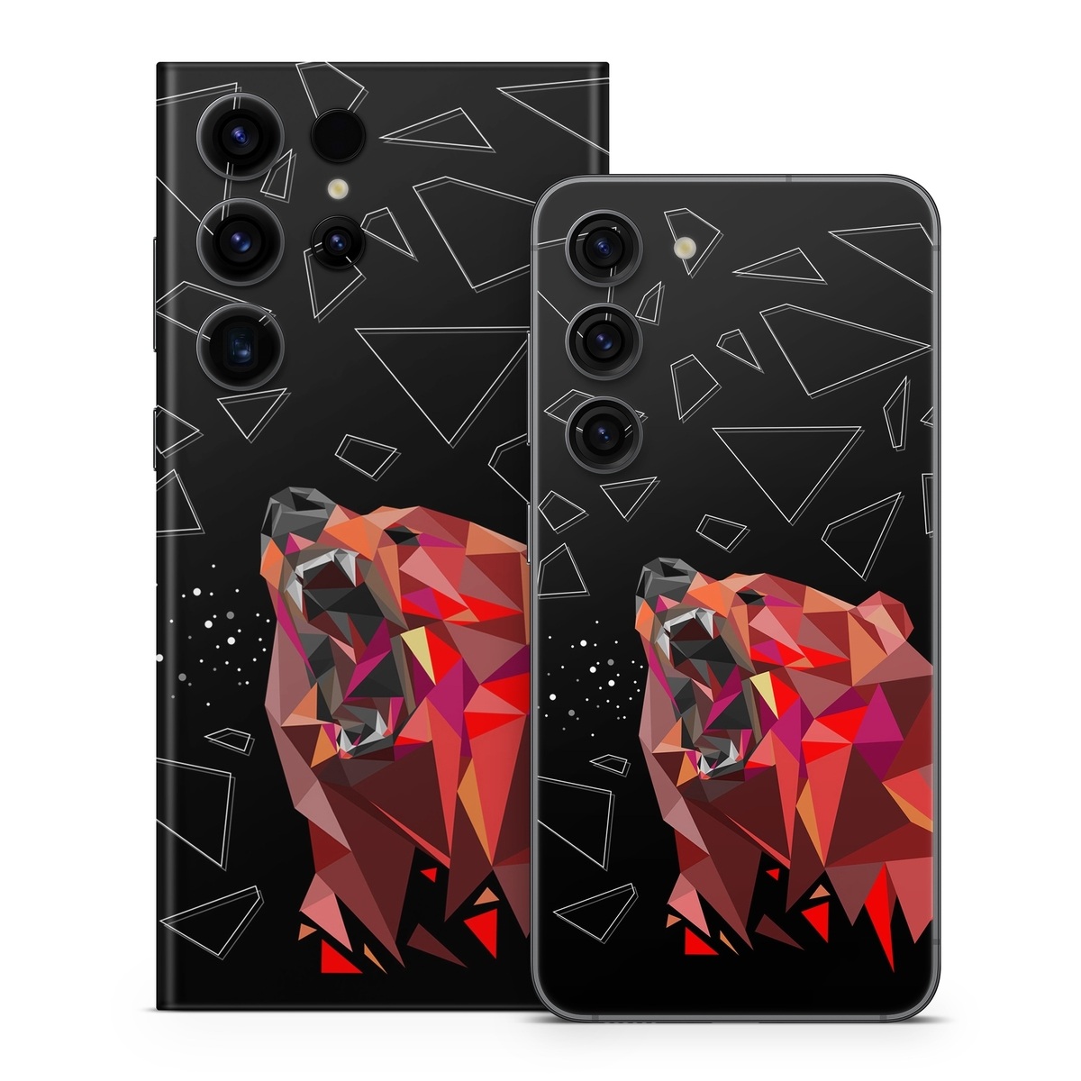 iStyles Samsung Galaxy S23 Series Skin design of Graphic design, Triangle, Font, Illustration, Design, Art, Visual arts, Graphics, Pattern, Space, with black, red colors, and tagged with patterns, animals.