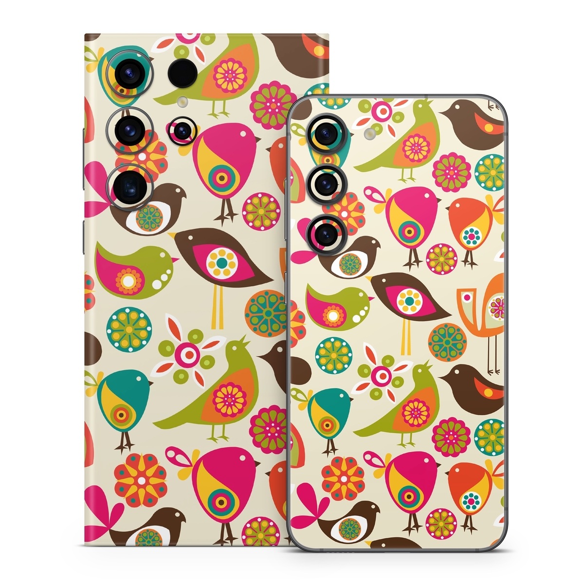 iStyles Samsung Galaxy S23 Series Skin design of Pattern, Visual arts, Wrapping paper, Design, Clip art, Textile, Motif, Sticker, Graphics, with yellow, pink, orange, green, brown, blue colors, and tagged with patterns, animals, flowers.