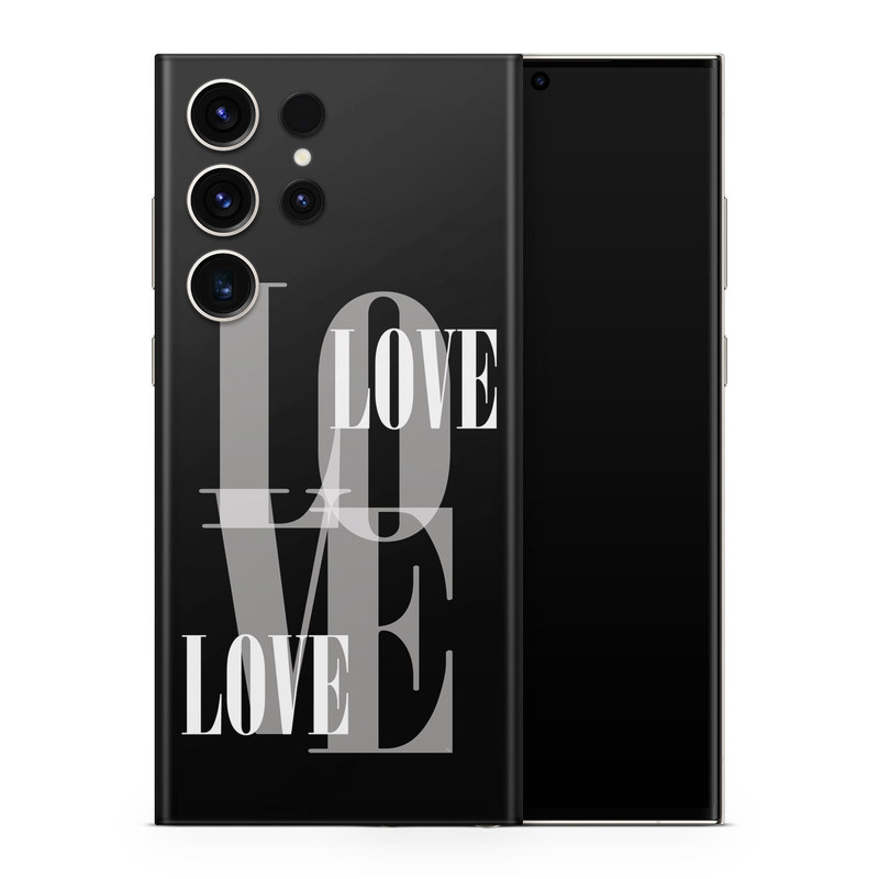 iStyles Samsung Galaxy S23 Series Skin design of Gesture, Font, Sleeve, Darkness, Logo, Brand, Graphics, Illustration, Terrestrial animal, Art, with black, white, gray colors, and tagged with signs, blackandwhite, grey, love, text.