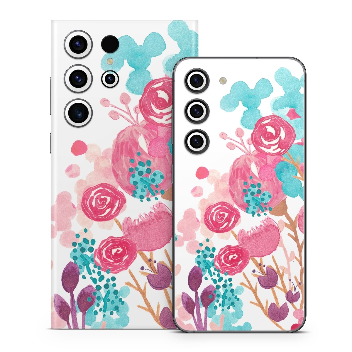 iStyles Samsung Galaxy S23 Series Skin design of Pink, Pattern, Design, Illustration, Clip art, Plant, Graphics, Art, with white, pink, purple, blue, red colors, and tagged with flowers.