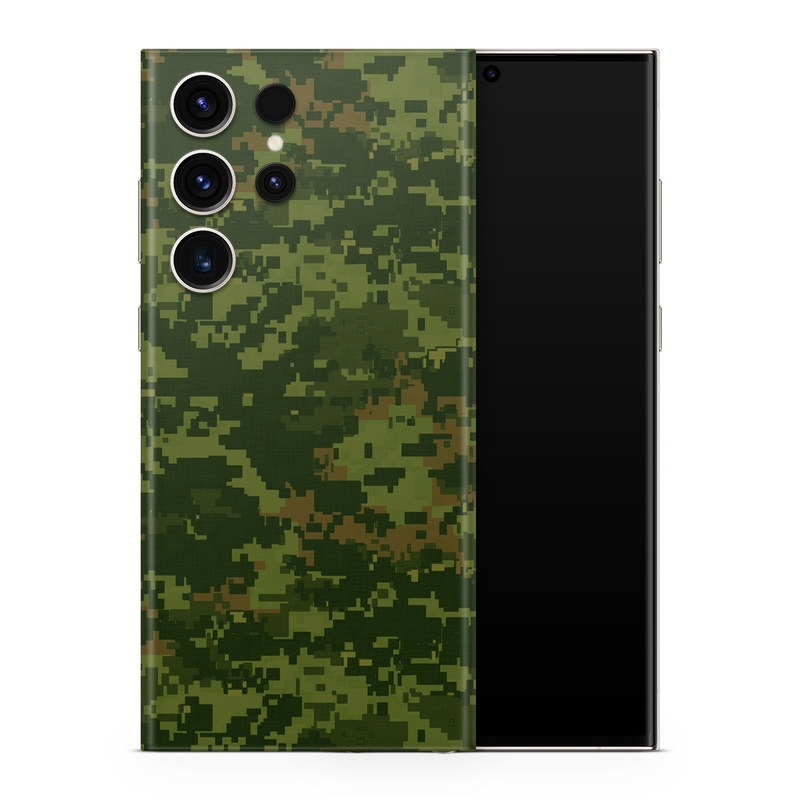 iStyles Samsung Galaxy S23 Series Skin design of Military camouflage, Green, Pattern, Uniform, Camouflage, Clothing, Design, Leaf, Plant, with green, brown colors, and tagged with military, lookslike, patterns.