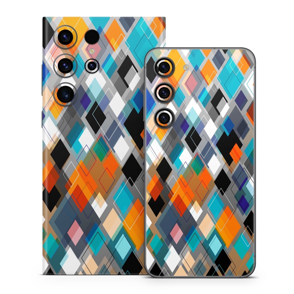 iStyles Samsung Galaxy S23 Series Skin design of Pattern, Line, Design, Colorfulness, Plaid, Tints and shades, Textile, Symmetry, Square, with black, blue, red, orange, white colors, and tagged with patterns.